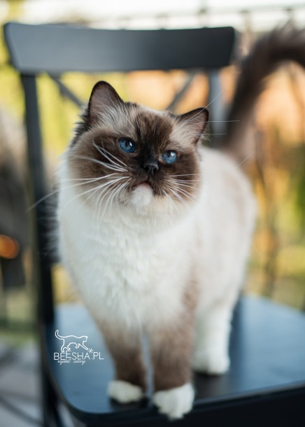 To kotka o cudownym wyglądzie i wspaniałym charakterze. Jest dużą i mądrą kotką . Bardzo jestem szczęsliwa, że została z nami w hodowli :)
