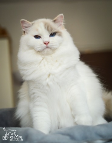 Cudowny rozmruczany charakter ! To kotka która jest naszym cieniem ! Urodziła się najmniejsza w miocie i była tak urocza i tak mocno nas w sobie rozkochała ( nas czyli mnie i dzieci ;) ) że nie było wyjścia MUSIAŁA zostać pomimo że zatrzymałam też jej brata :) . Kompletnie nie żałuje tej decyzji .